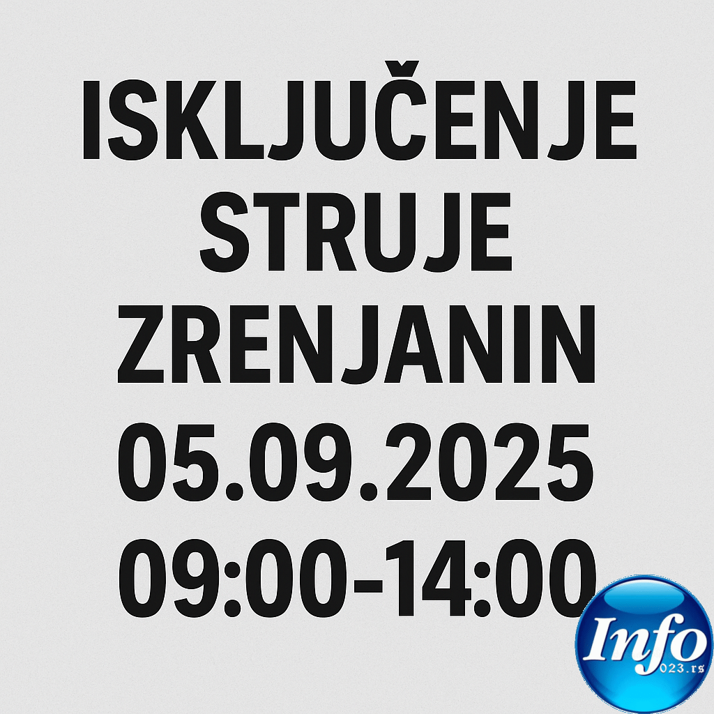 U petak, 05. septembra 2025. godine, planirano je isključenje struje u Zrenjaninu u terminu od 09:00 do 14:00 časova. Prekid napajanja biće sukcesivan i trajaće od 30 do 45 minuta u različitim delovima grada.